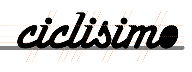 A mark for a cycling jersey design that went down another road. I show it here in the hopes that someone will see it and ask me to apply the forward motion and classic script to a project…